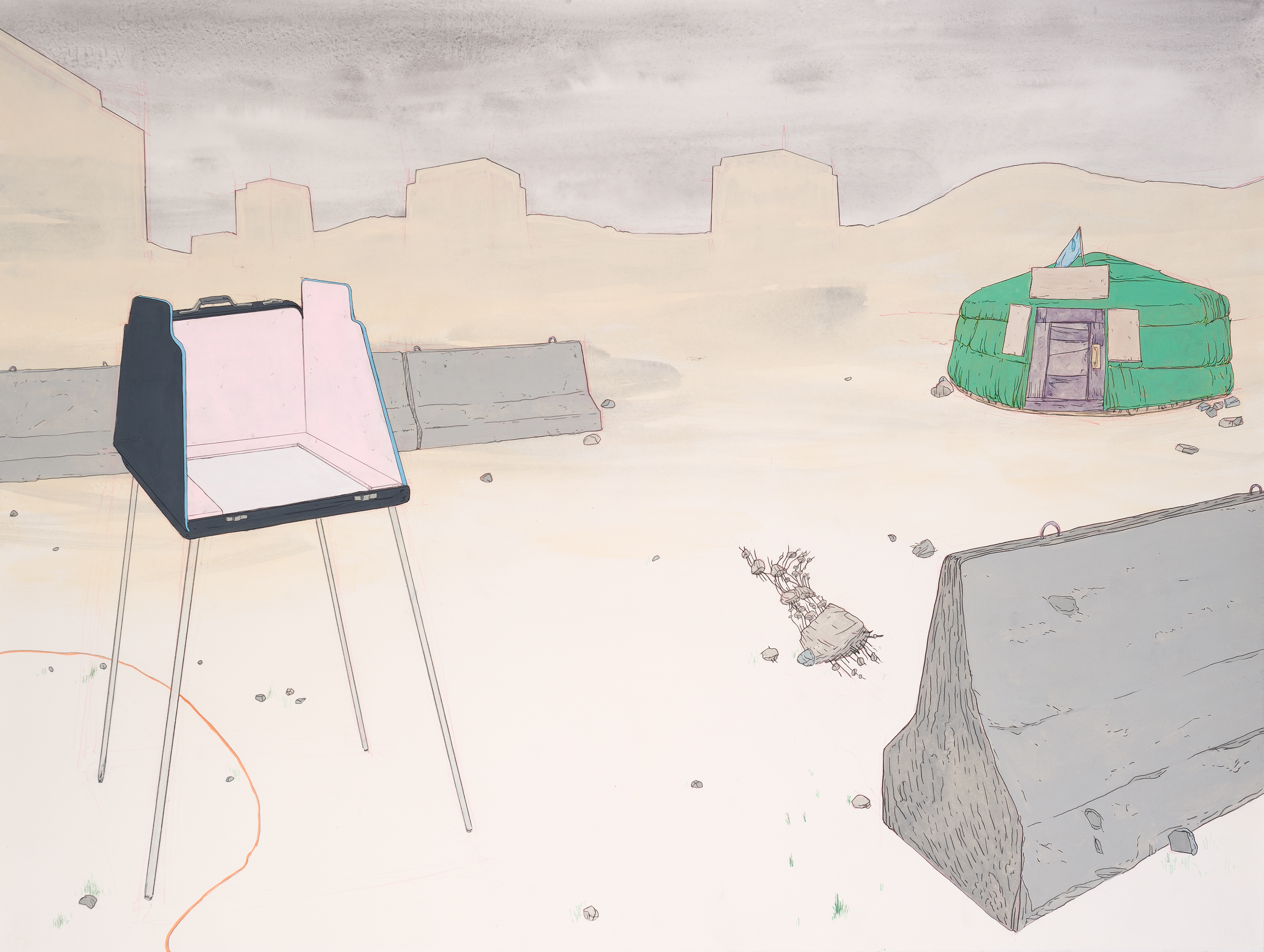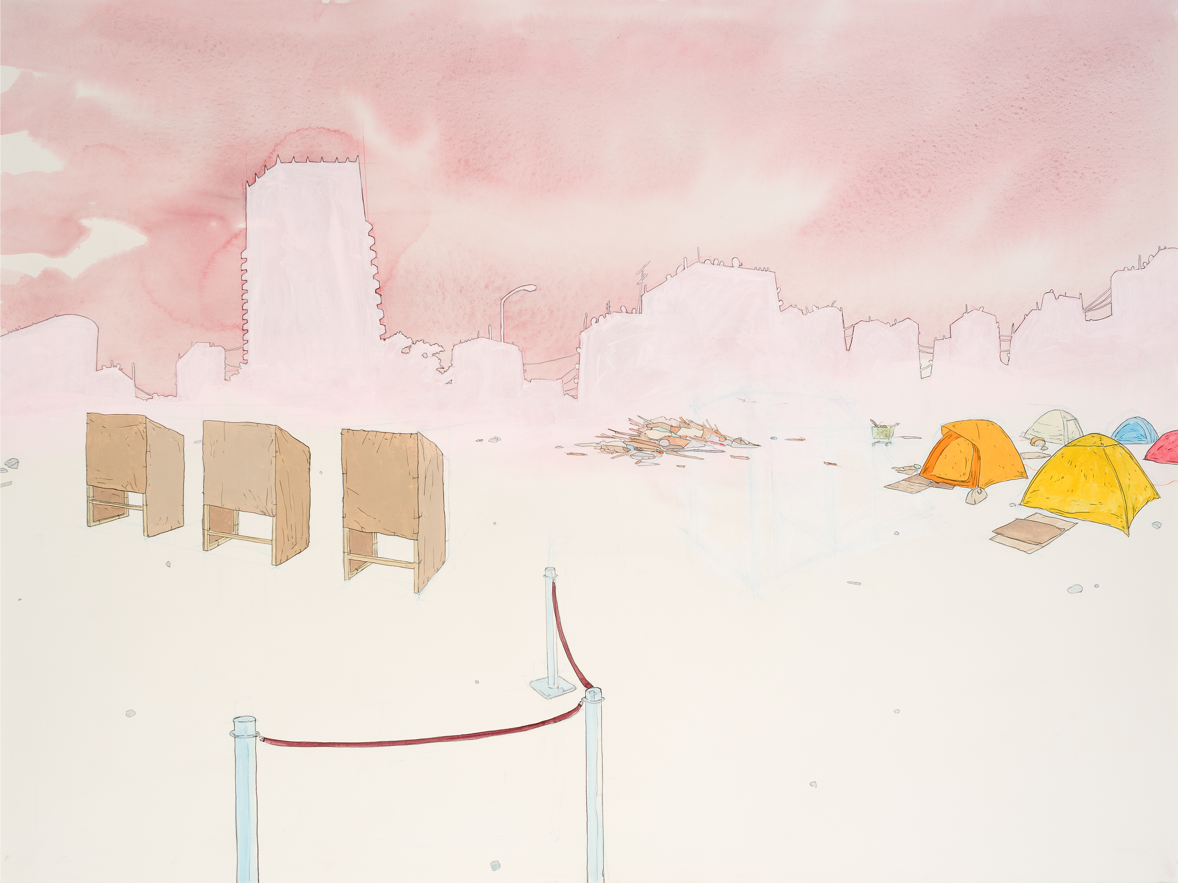 As part of the American Now exhibition at the McColl Center an exhibition timed to coincide with the Democratic National Convention, occurring in Charlotte that year. My response was Polling Station, an exhibition in two parts, and installation and this suite of drawings, both of which were working out questions about the nature of citizens’ sense of agency within our democratic system, and the physical mechanics of voting.